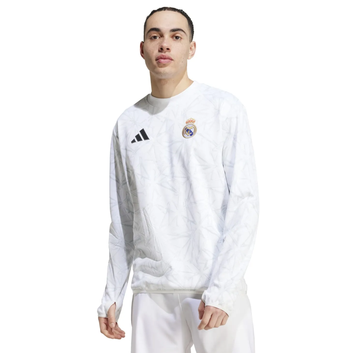 Prepárate para la victoria en los días de partido más fríos. La sudadera adidas que usan los jugadores del Real Madrid cuando calientan antes del inicio del partido, esta camiseta de fútbol te mantendrá seco durante los entrenamientos intensos gracias a AEROREADY que controla la humedad. Un escudo del club bordado muestra tu pasión por Los Blancos, lo que lo convierte en una pieza esencial del equipamiento para los aficionados.