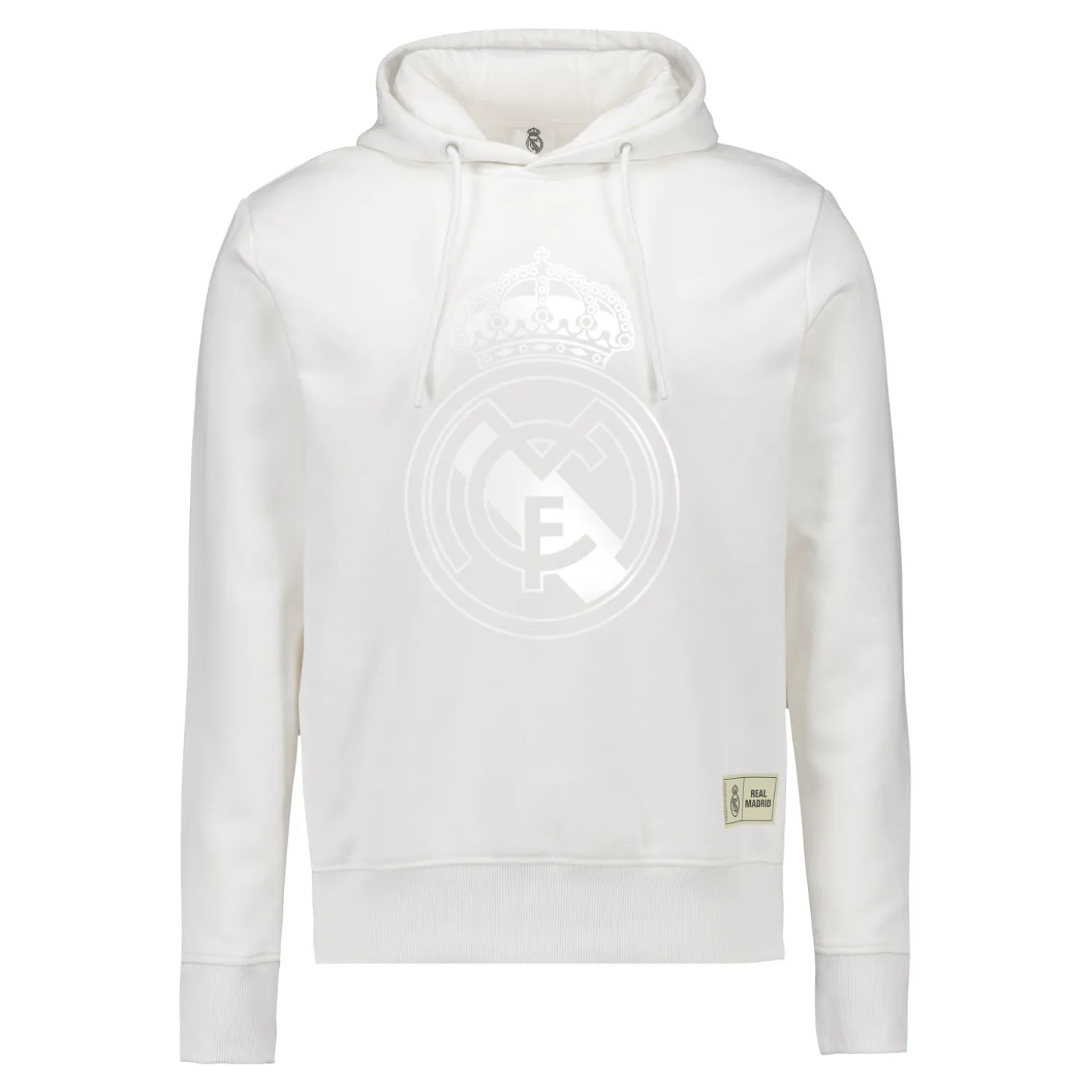 Descubre esta sudadera blanca con capucha para hombre con el escudo del Real Madrid, de la colección Blackout. Esta pie…