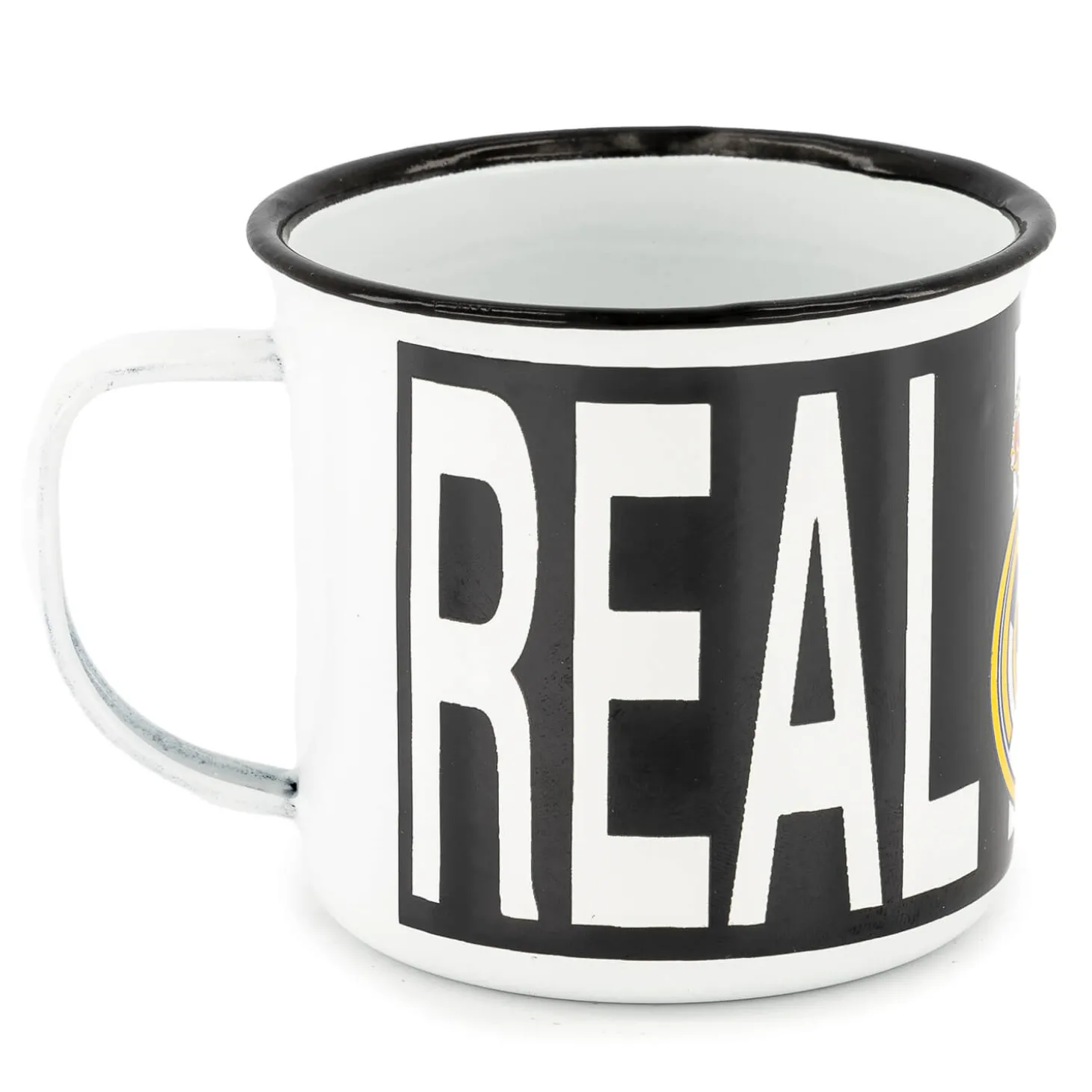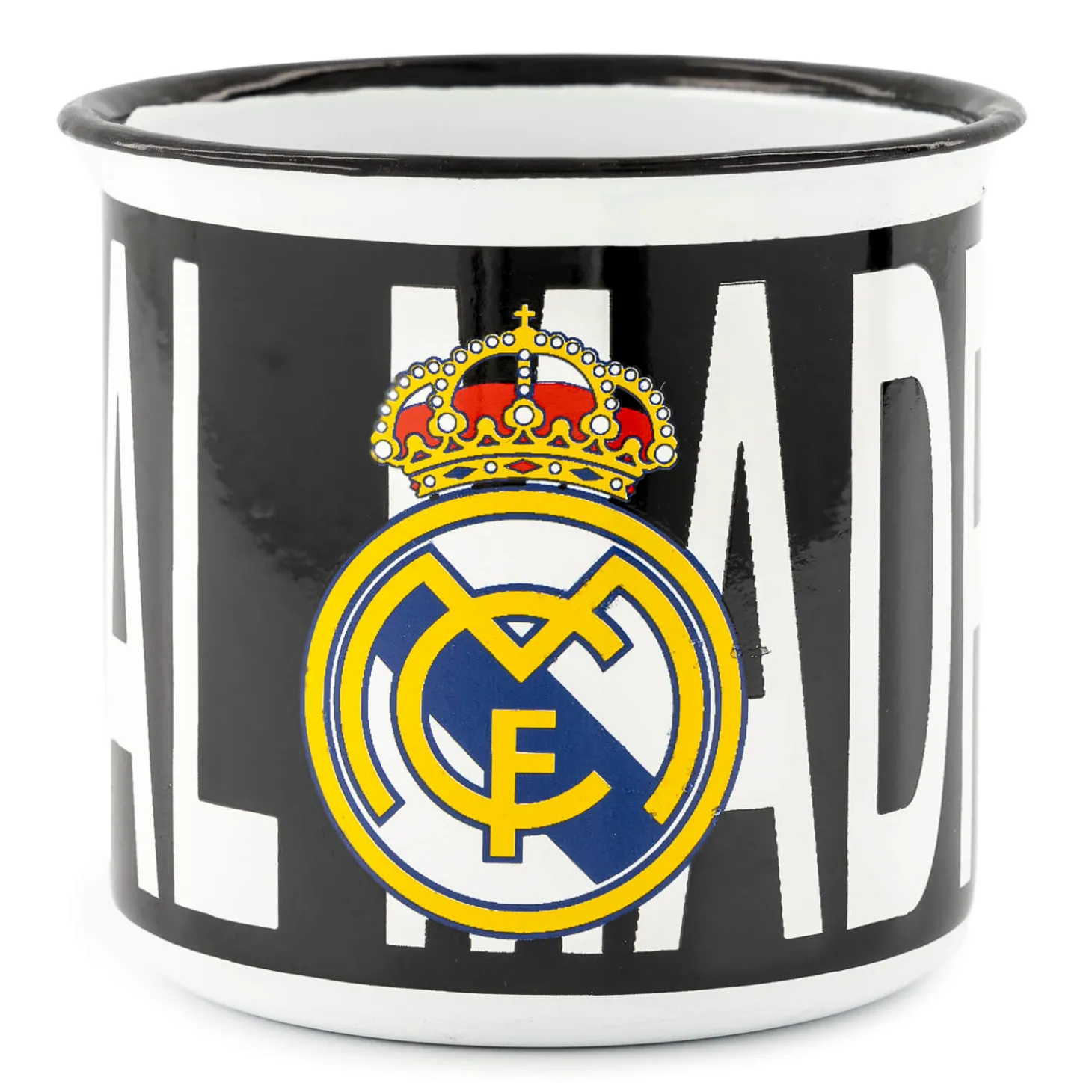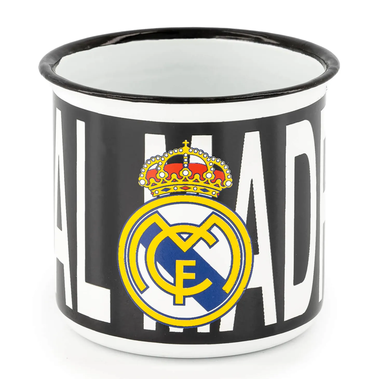 Disfruta de tus bebidas con un toque de elegancia con esta taza metálica de 350 ml en blanco, que presenta el icónico escudo del Real Madrid. Su acabado metálico elegante y su diseño robusto la hacen perfecta tanto para el uso diario como para ocasiones especiales. Ideal para los aficionados que quieren combinar su orgullo por el equipo con estilo.
