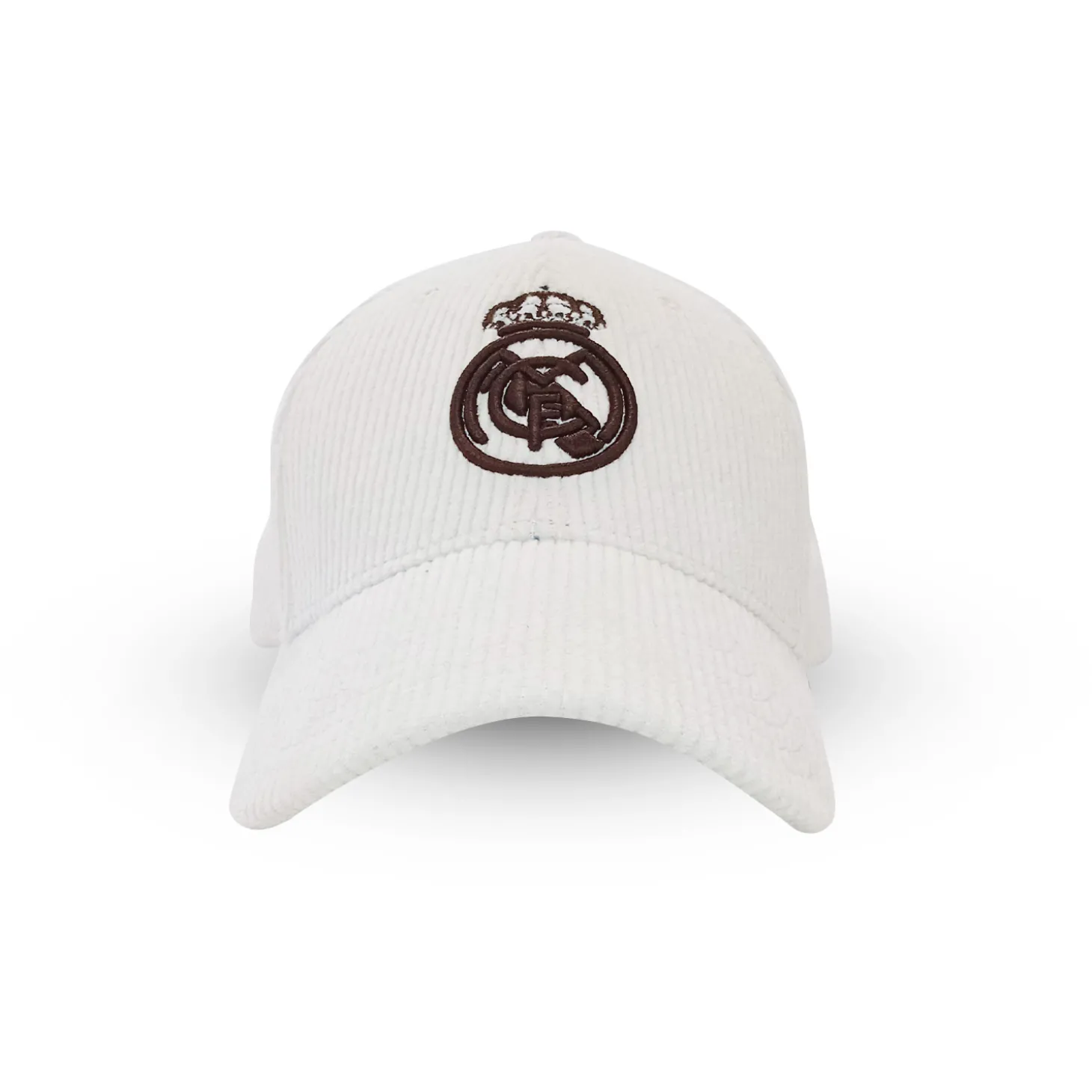 Añade un toque de estilo a tu día a día con esta gorra de pana del Real Madrid en color beige. Con un acabado en de p…
