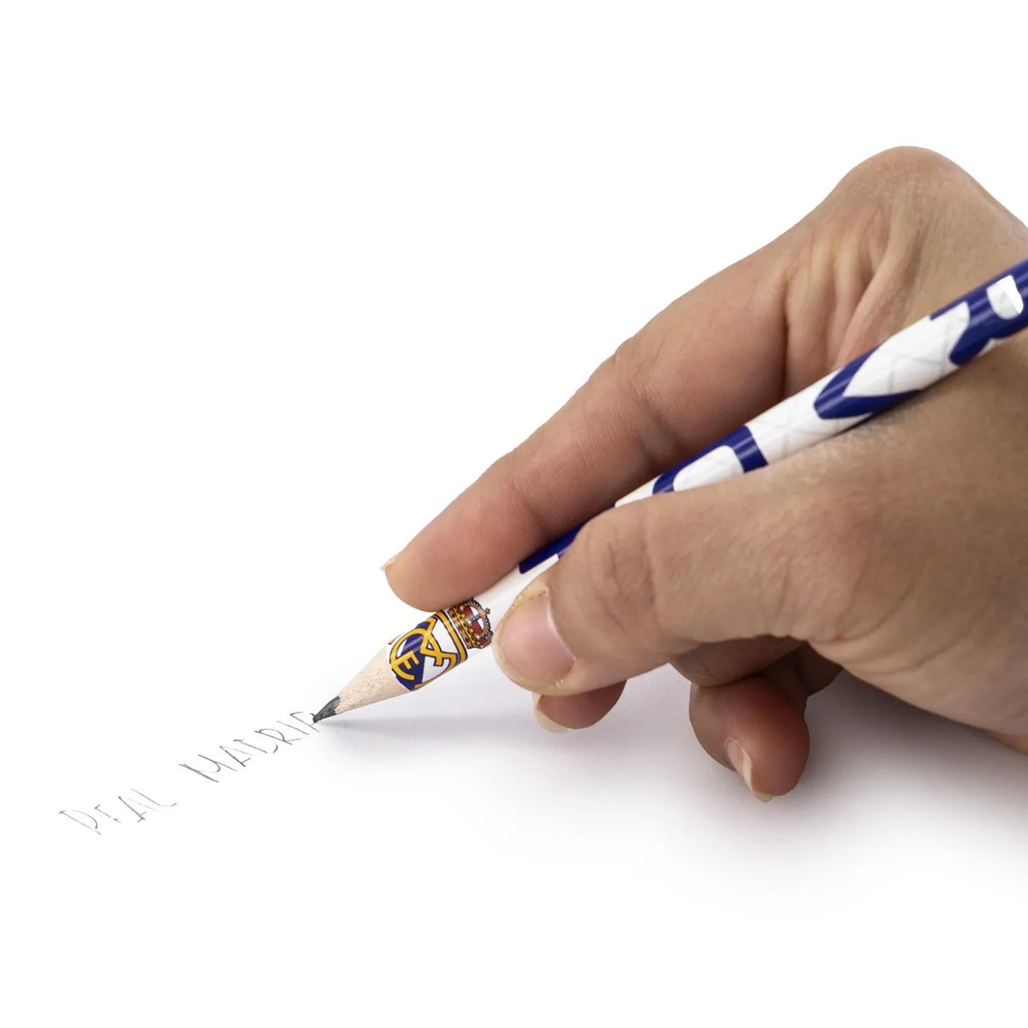 Lleva siempre contigo la esencia del mejor equipo del mundo con este lápiz con borrador de escudo blanco del Real Madri…