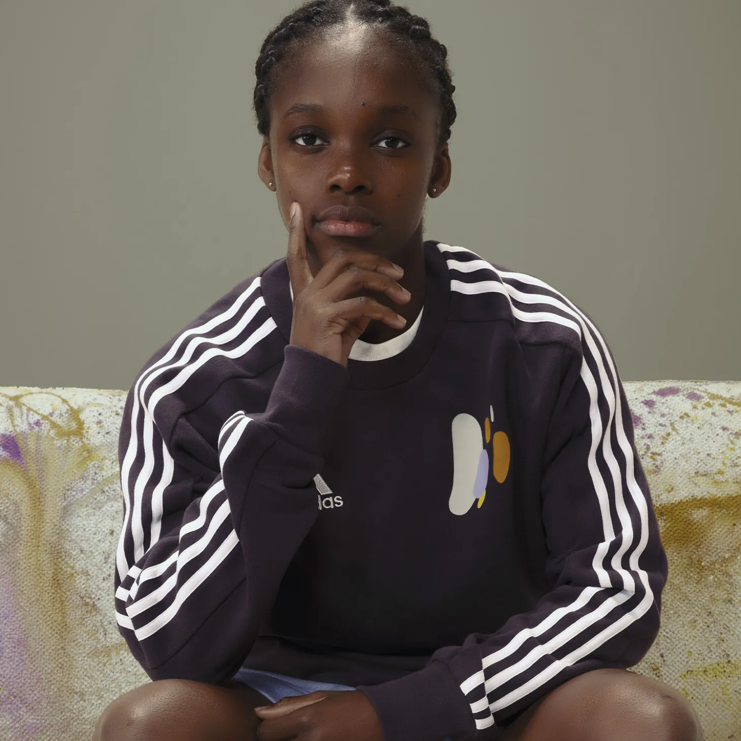 Sudadera adidas Artist Pack diseñada por el legendario grafitero Zeta 1970. Un símbolo de inclusión y orgullo madridista. Incorpora ilustraciones de pies descalzos, con calcetines y con botas, representando las diferentes realidades sociales y el deporte como símbolo de unión, sin importar los recursos. Los distintos tonos de piel trasladan el mensaje de que: en el campo, no hay espacio para la discriminación de género, religión o raza.