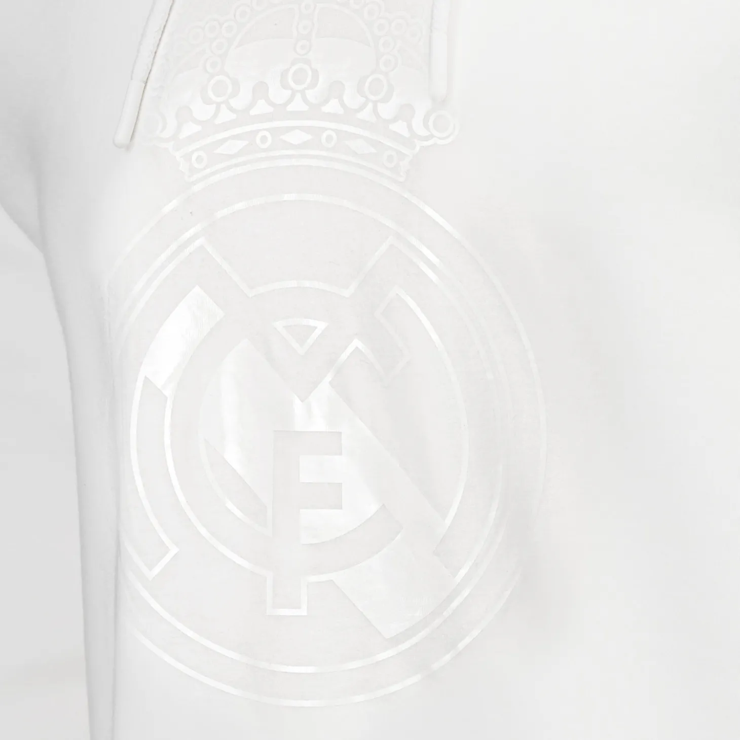 Descubre esta sudadera blanca con capucha para hombre con el escudo del Real Madrid, de la colección Blackout. Esta pie…