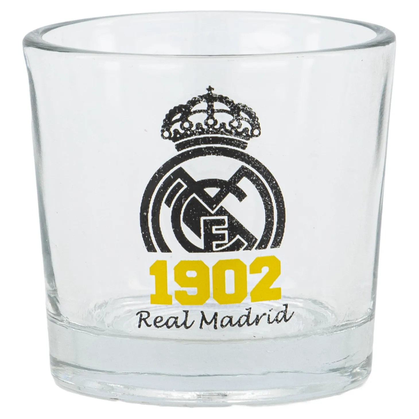 Conmemora cada éxito del Real Madridcon este set de 3 vasos de chupito de 50 ml , decorado con el distintivo escudo del club. Hecho de vidrio resistente, es perfecto para disfrutar en los días de partido o como un valioso objeto de colección. Muestra tu lealtad con cada trago.