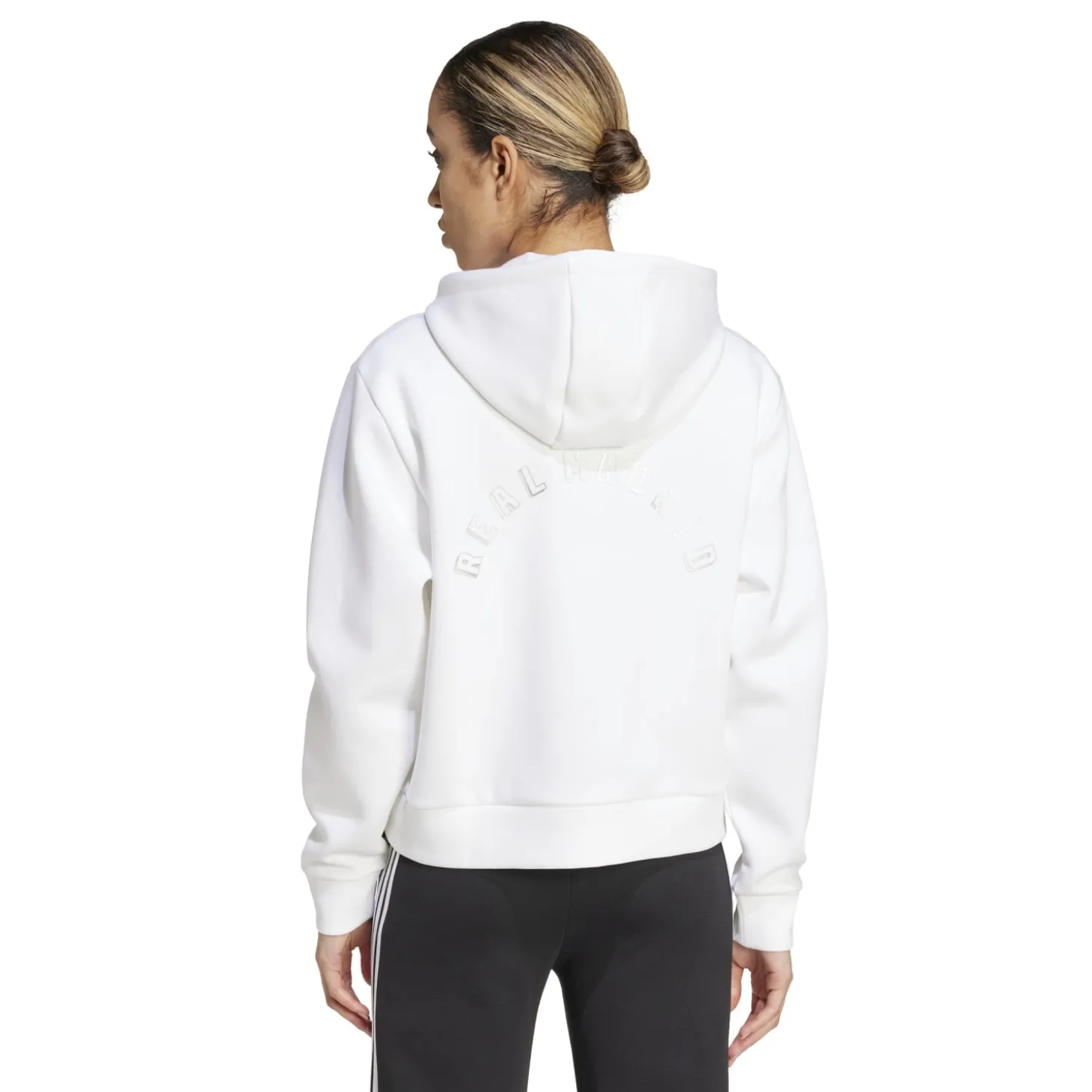 Declara tu lealtad a Los Blancos. Creada para mostrar la unidad del equipo antes del inicio, esta chaqueta adidas con el himno del Real Madrid mantiene a la vista tu pasión por el fútbol. La suave tela de punto doble garantiza que estés cómodo y un par de bolsillos añaden utilidad. Con el escudo del club en el pecho y el nombre del equipo en la espalda, nadie dudará de tu devoción.
