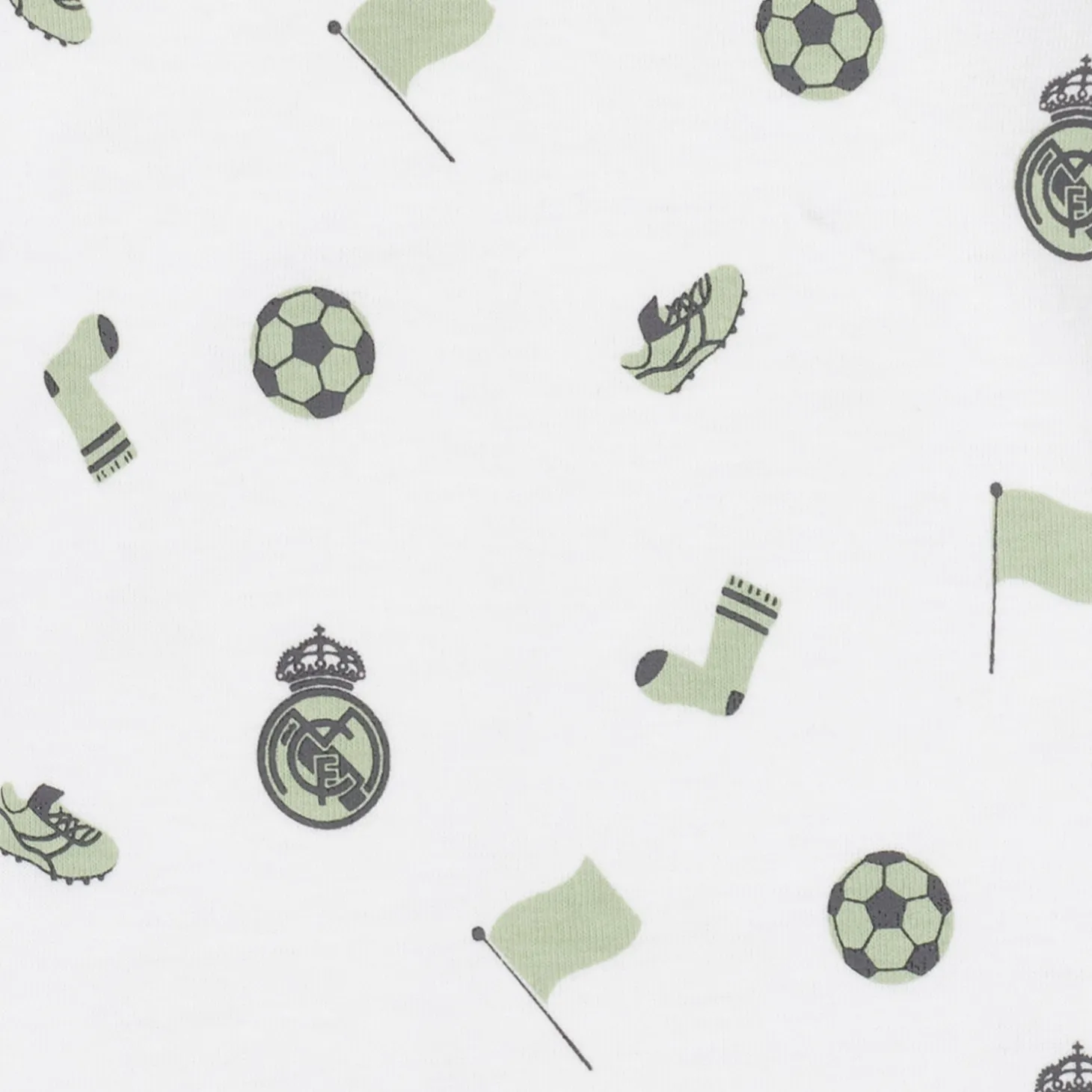 ¡Pasión por el Real Madrid desde la cuna! Descubre este set de 2 bodies para bebé verde y blanco del Real Madrid diseñado para los pequeños “merengues” de la casa ¡Porque ser madridista se lleva en el corazón desde el nacimiento!