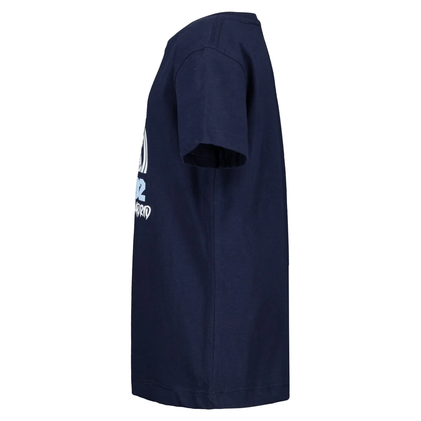 Camiseta infantil azul marino y blanca del Real Madrid con 1902 grabado. ¡Diseñado para los pequeños madridistas!