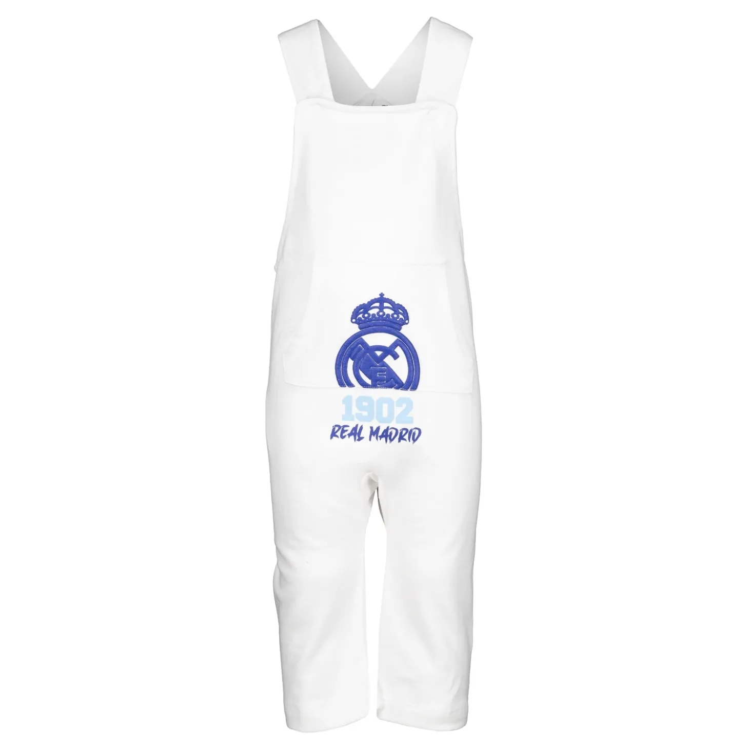 Peto corto infantil blanco del Real Madrid con 1902 grabado. ¡Diseñado para los pequeños madridistas!