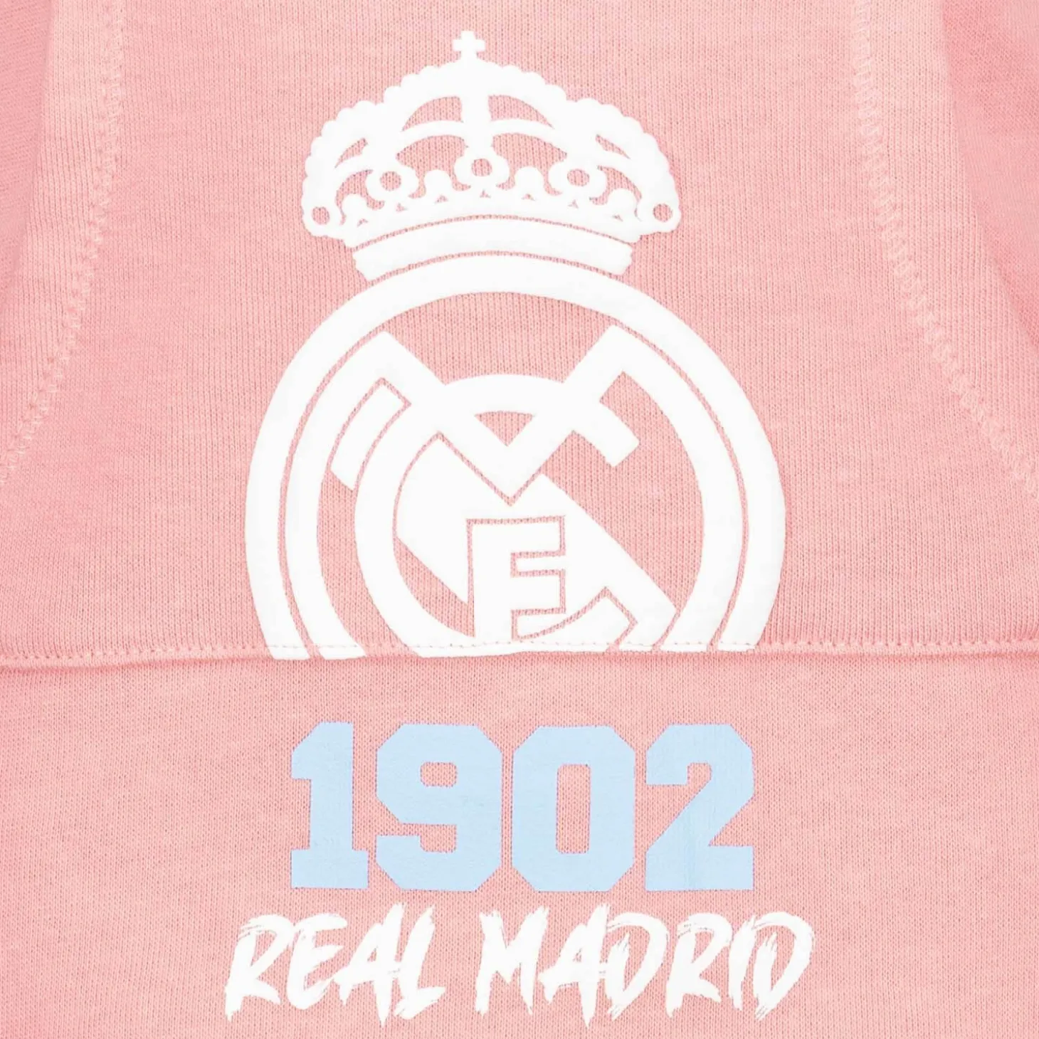 Peto corto infantil rosa del Real Madrid con 1902 grabado. ¡Diseñado para los pequeños madridistas!