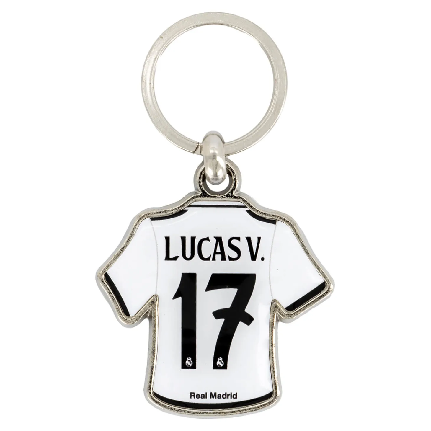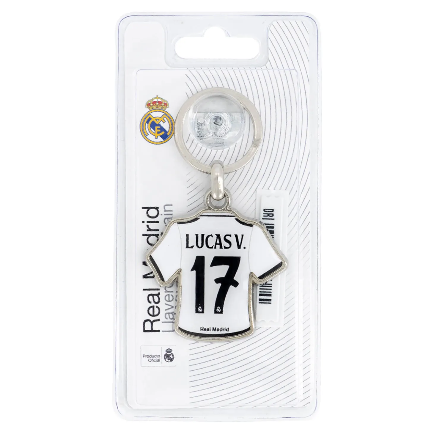 ¡Hazte con el llavero oficial de la camiseta de Lucas Vázquez! Con el 17 a la espalda y un diseño detallado que replica la icónica camiseta del defensa del Real Madrid, este llavero te acompañará a todas partes, mostrando tu pasión por el club y tu admiración por Lucas.