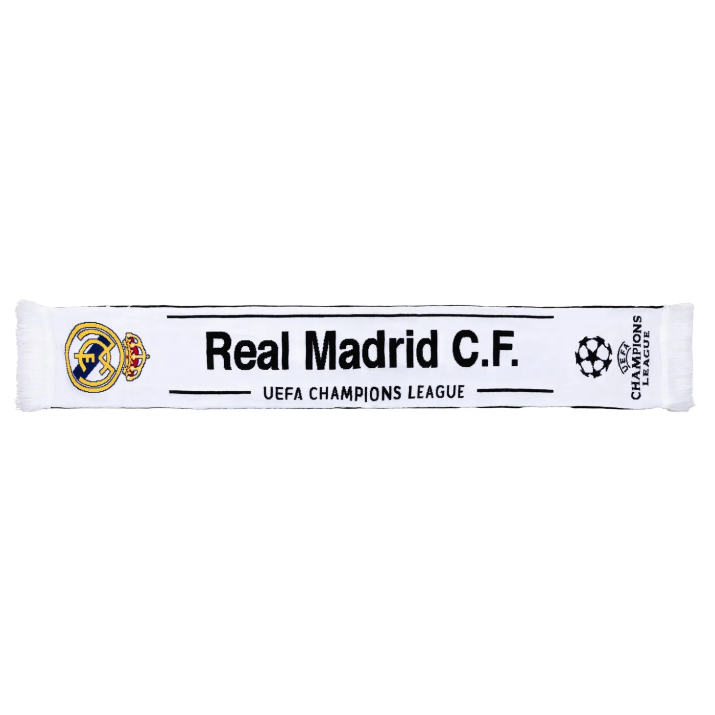 La bufanda de la colección UEFA Champions League es un producto que celebra los éxitos en Europa del mejor club del mundo. Cada vez que un aficionado levante una de estas bufandas recordara los goles realizados por los míticos del club blanco como el conseguidos. Sentirse Madridista es nunca rendirse y siempre luchar, por eso luciras esta bufanda con orgullo.
